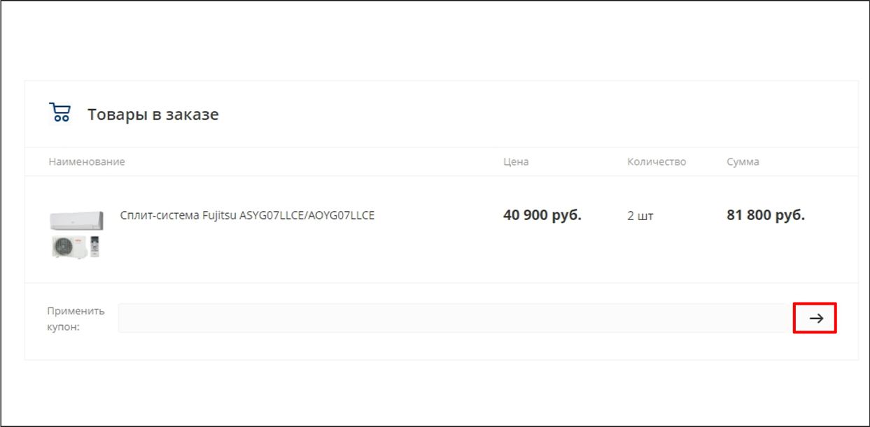 5. Чтобы применить промо-код, укажите код купона в поле «Промо-код» и активируйте его нажав кнопку с символом «Стрелка»